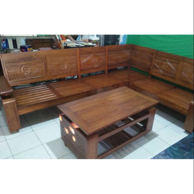 Harga kursi tamu sudut tangan bagong kayu jati termurah.